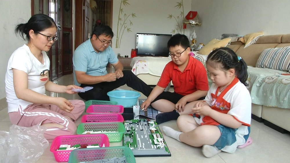 圖為劉志闊、吳晶夫婦陪孩子搭積木。