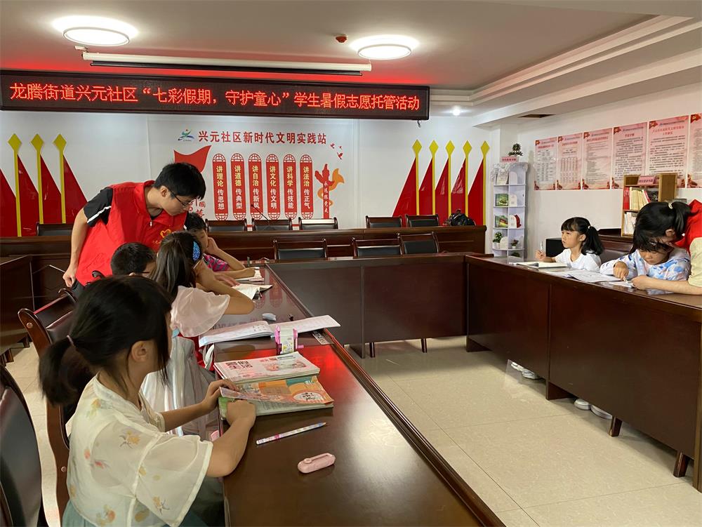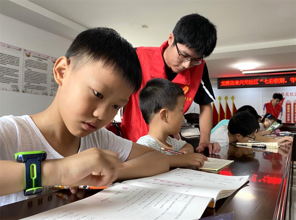 炎炎夏日,一項特別的社區(qū)志愿服務活動正在龍騰街道興元社區(qū)展開。 為解決社區(qū)雙職工家庭兒童、留守流動兒童暑假期間托管照護難題,同時為返鄉(xiāng)大學生及青年團員志愿者提供一個鍛煉自我、奉獻愛心的平臺,興元社區(qū)以“七彩假期,守護童心”為主題,面向小學一至六年級學生提供暑假托管志愿服務。 此項暑假托管志愿服務設(shè)在興元社區(qū)活動中心,學生家長們對這一志愿服務項目表示贊許。自活動啟動以來,社區(qū)已有近百名孩子報名“入托”。 為優(yōu)化托管照護服務,該社區(qū)返鄉(xiāng)大學生們和青年團員志愿者制定了詳細的托管服務計劃,在每周周一至周五的早上八點至下午五點,開展假期陪護、作業(yè)輔導、文體游戲、課外閱讀等活動,創(chuàng)造輕松愉快的學習氛圍,引導孩子們快樂學習、享受“悅讀”、增進交流,提升綜合素質(zhì)。