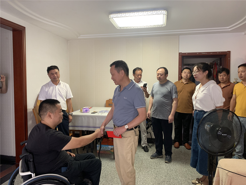 “八一”建軍節(jié)即將到來,為表達(dá)對退役軍人的崇高敬意和對傷殘軍人的關(guān)懷問候,7月28日,新渡商會會長吳厚忠組織10余名退役軍人企業(yè)家成立“八一”慰問小組,在新渡鎮(zhèn)退役軍人服務(wù)站負(fù)責(zé)人的帶領(lǐng)下,對該鎮(zhèn)20位傷殘退役軍人進(jìn)行走訪慰問,向他們送上慰問金和節(jié)日的祝福。