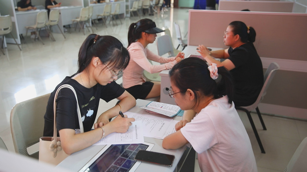 圖為求職高校畢業(yè)生正在填寫應(yīng)聘登記表。