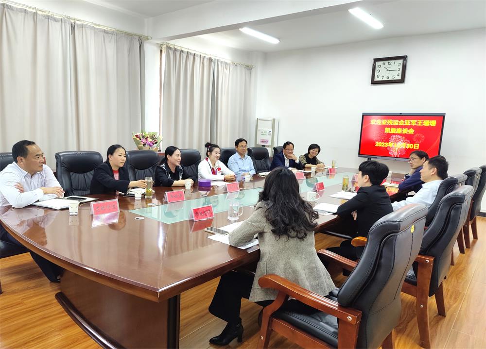 在交流發(fā)言中,王珊珊暢談了參加此次杭州亞殘運(yùn)會(huì)的心路歷程。她表示,此次獲獎(jiǎng)離不開家鄉(xiāng)人民的支持,離不開市委市政府的關(guān)心和鼓勵(lì)。接下來,她將堅(jiān)持刻苦訓(xùn)練,希望在世界級(jí)的賽場上為國爭光、為家鄉(xiāng)添彩。