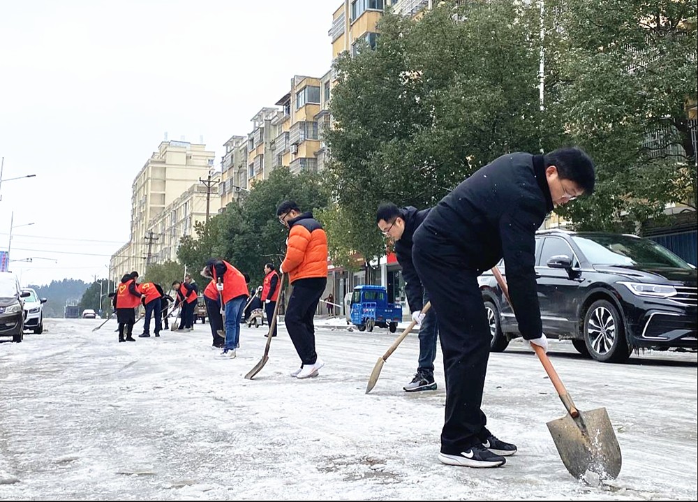 12月19日上午,大關(guān)鎮(zhèn)機(jī)關(guān)黨員干部、青年志愿者等在鎮(zhèn)中心街道、鎮(zhèn)中心十字路口等重點(diǎn)區(qū)域掃雪除冰,確保道路暢通、行人和車輛安全出行。