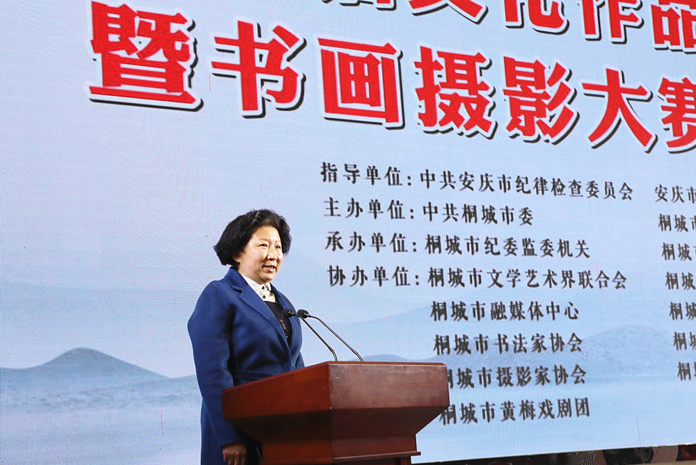 圖為桐城市廉潔文化作品展演周開幕式暨書畫攝影大賽頒獎儀式現(xiàn)場。
