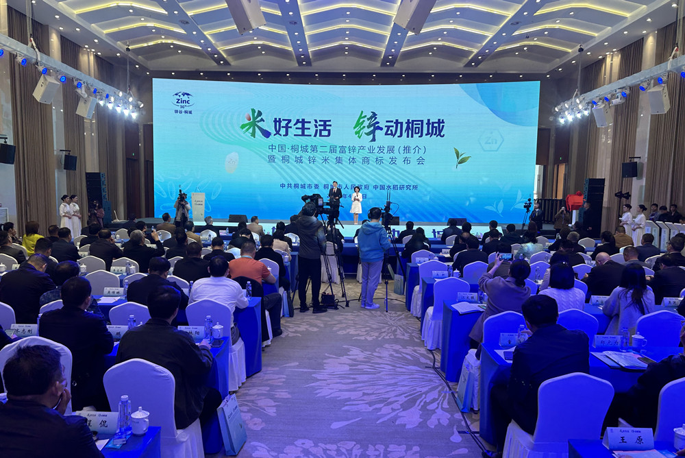圖為中國•桐城第二屆富鋅產(chǎn)業(yè)發(fā)展(推介)暨桐城鋅米集體商標發(fā)布會現(xiàn)場