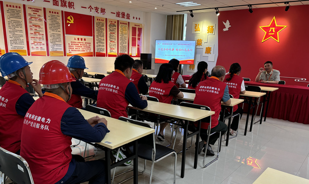 圖為國網(wǎng)桐城市供電公司“皖美共產(chǎn)黨員服務隊”隊員聆聽榮休軍人講述軍旅故事。