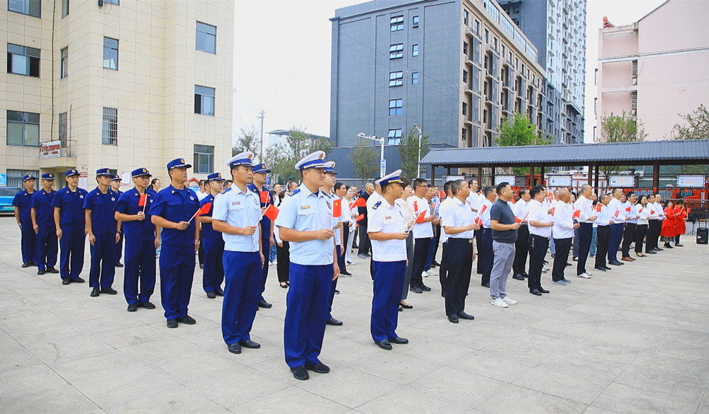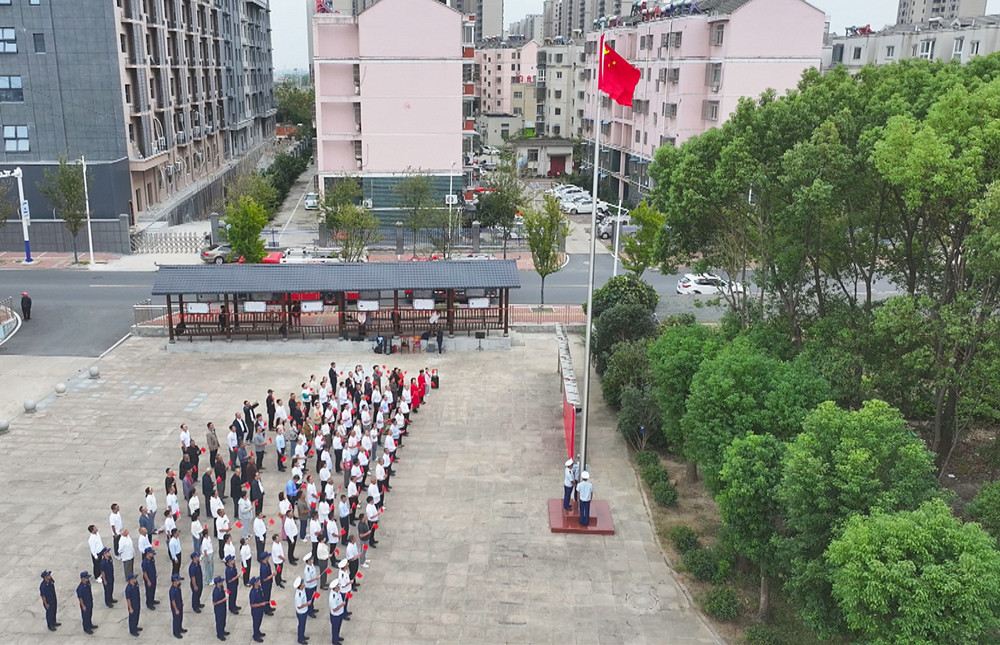 上午8時整,在太平社區(qū)活動廣場上,社區(qū)黨員、群眾、社區(qū)消防員以及社區(qū)黨建共建單位的黨員干部約200余人整齊列隊。大家懷著滿腔激情,參加升國旗儀式。