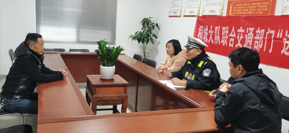 圖為檢查人員與運(yùn)輸企業(yè)負(fù)責(zé)人座談。