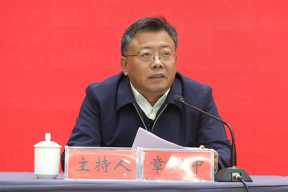 圖為桐城市委書記章周中主持宣講報(bào)告會(huì)并在會(huì)上講話。