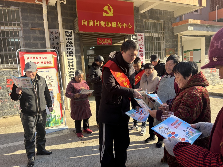 蛇年新春將至,為弘揚時代新風,營造文明祥和、健康向上的節(jié)日氛圍,近日,龍騰街道向前村開展移風易俗迎新春宣傳活動。