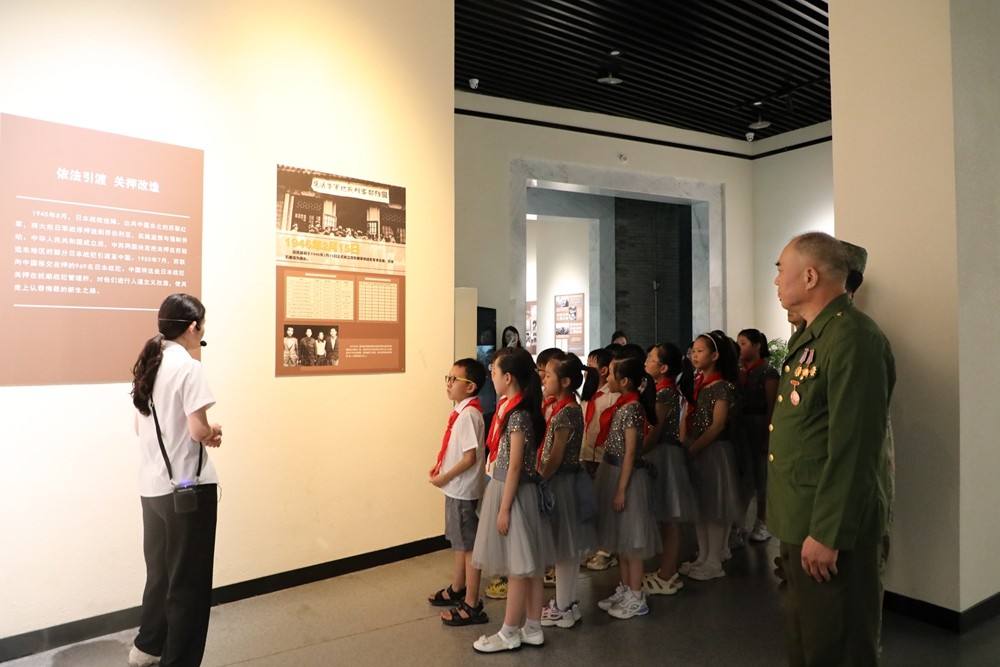 活動中,基干民兵代表、北街小學(xué)少先隊員代表共同參觀“正義審判——新中國審判日本戰(zhàn)犯史實特展”。展覽通過詳實的歷史文獻(xiàn)、珍貴的影像資料、高度還原的場景模型,系統(tǒng)梳理了新中國成立后依法審判日本戰(zhàn)犯的全過程,清晰展現(xiàn)了不容忘卻的歷史真相。