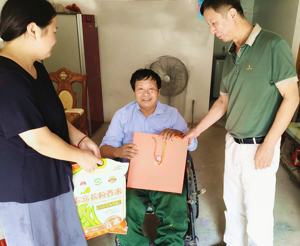 9月28日,桐城興財(cái)控股集團(tuán)公司工作人員上門走訪慰問新渡鎮(zhèn)合城村脫貧戶汪旭峰(中),為其送上大米、月餅等慰問品,并致以誠(chéng)摯的節(jié)日問候。 中秋佳節(jié)將至,為讓困難群體度過一個(gè)祥和溫馨的節(jié)日,該公司組織人員走進(jìn)結(jié)對(duì)幫扶村——合城村、鳳凰村,走訪慰問兩村共10戶困難家庭,為他們帶去滿滿的節(jié)日祝福。 洪貞貞 雷蕾 孫傳銀 攝 |