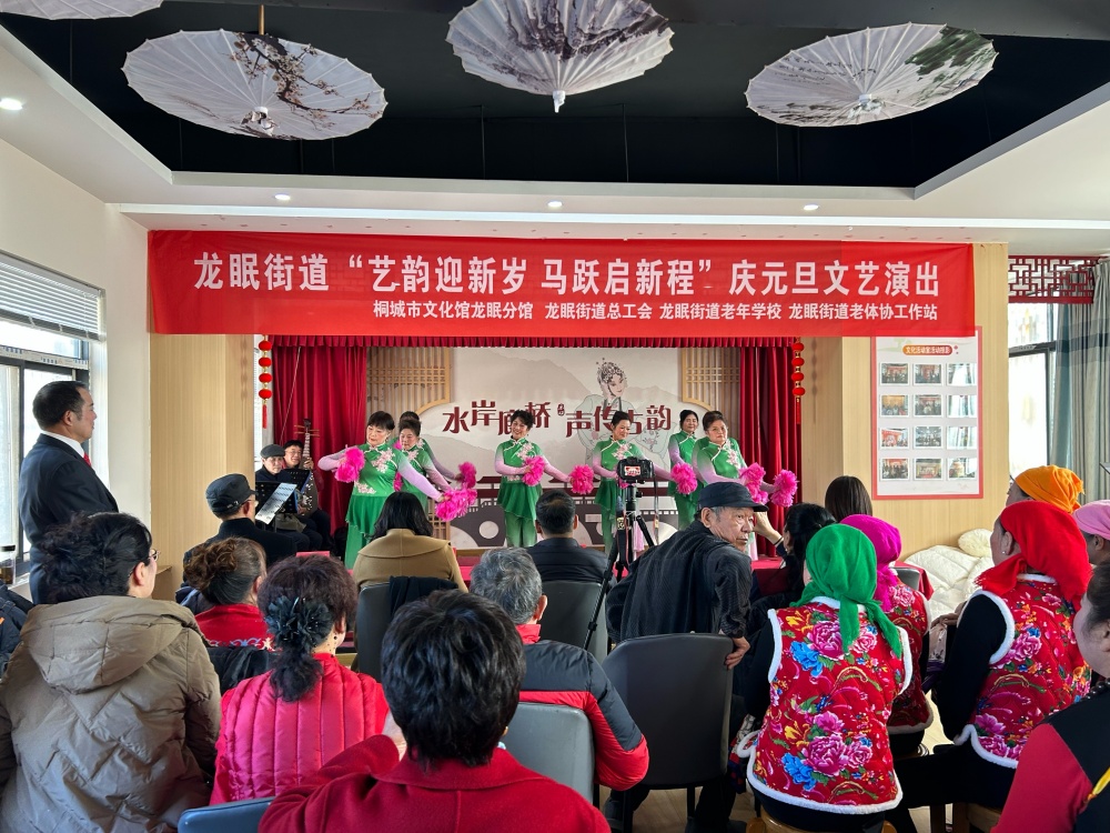 12月28日,由桐城市文化館龍眠分館、龍眠街道總工會、龍眠街道老年學(xué)校、龍眠街道老體協(xié)工作站聯(lián)合舉辦的“藝韻迎新歲 馬躍啟新程”慶元旦文藝演出在該街道五心驛站溫情上演。當(dāng)?shù)鼐用駳g聚一堂,在歡聲笑語中迎接2026年元旦佳節(jié)與即將到來的農(nóng)歷馬年,共同感受鄰里和睦的暖心氛圍。