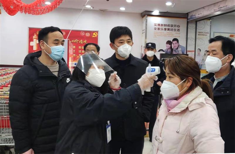 在華潤蘇果超市,劉中漢仔細(xì)查看商場入口處體溫監(jiān)測點設(shè)置、人員進(jìn)出信息登記等情況。他要求:超市要督促所有出入人員佩戴口罩,做到無一遺漏,要在進(jìn)出口及時疏導(dǎo)人流。劉中漢還詳細(xì)了解超市的物資儲備情況,要求超市確保生活必需品的充足供應(yīng)。