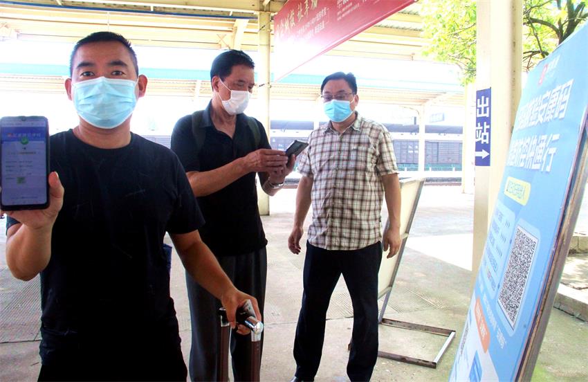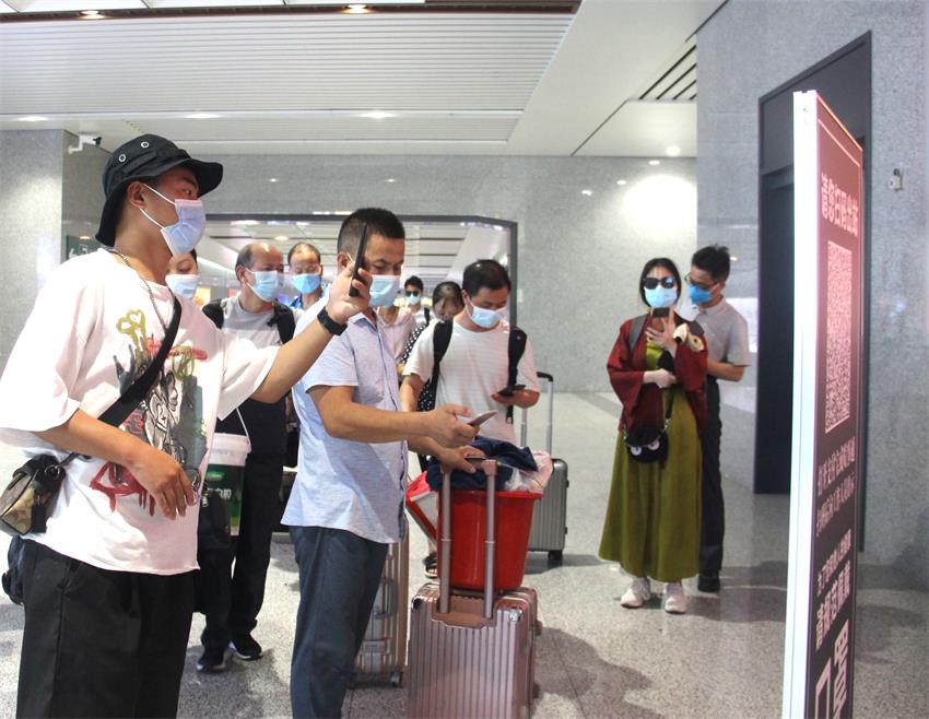 在桐城火車(chē)站,旅客們經(jīng)過(guò)掃描安康碼、無(wú)感體溫檢測(cè)后陸續(xù)出站。徐雄在察看旅客出站流程后指出,疫情防控是當(dāng)前工作的重中之重,火車(chē)站是旅客進(jìn)出桐城的重要關(guān)口,要嚴(yán)格落實(shí)中高風(fēng)險(xiǎn)地區(qū)人員查控,堅(jiān)決守住防止疫情輸入的防線(xiàn)。