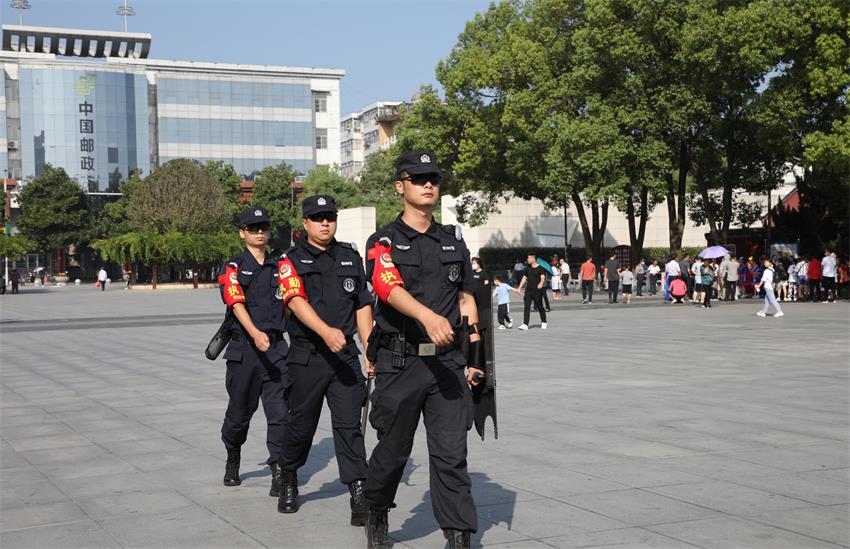 圖為堅(jiān)守在一線(xiàn)崗位的桐城特警。