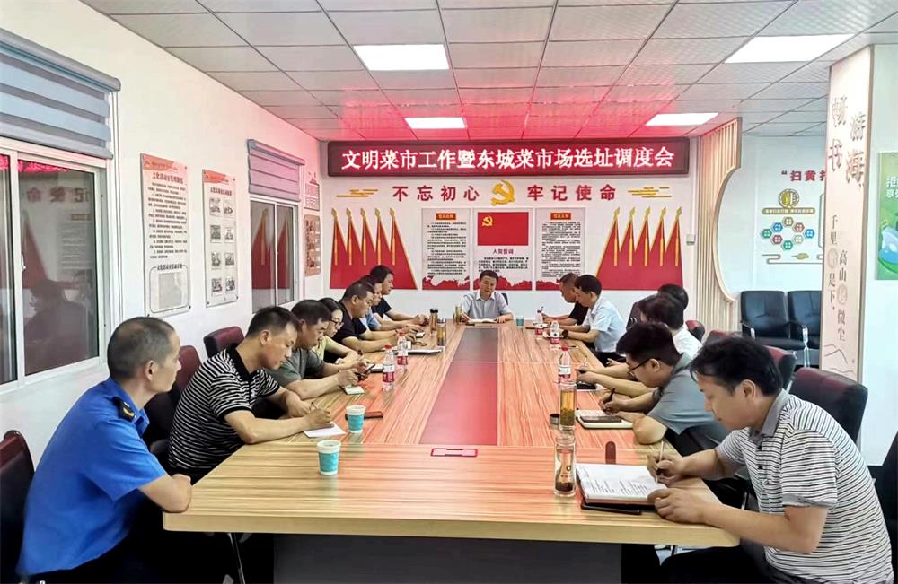 圖為桐城市文明菜市工作暨東城菜市場(chǎng)選址調(diào)度會(huì)現(xiàn)場(chǎng)。