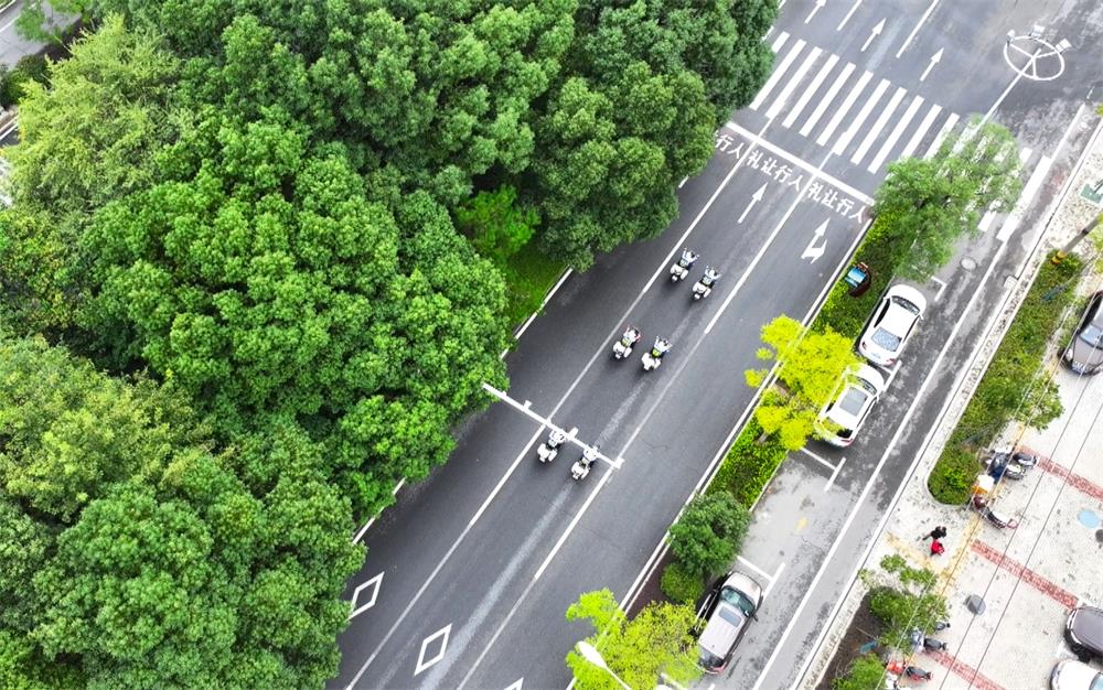圖為正在路面巡邏的桐城交警。