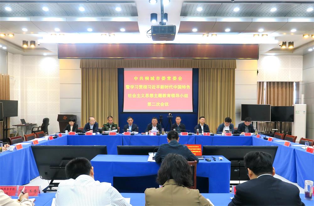 圖為市委常委會暨學習貫徹習近平新時代中國特色社會主義思想主題教育領導小組第二次會議現(xiàn)場。