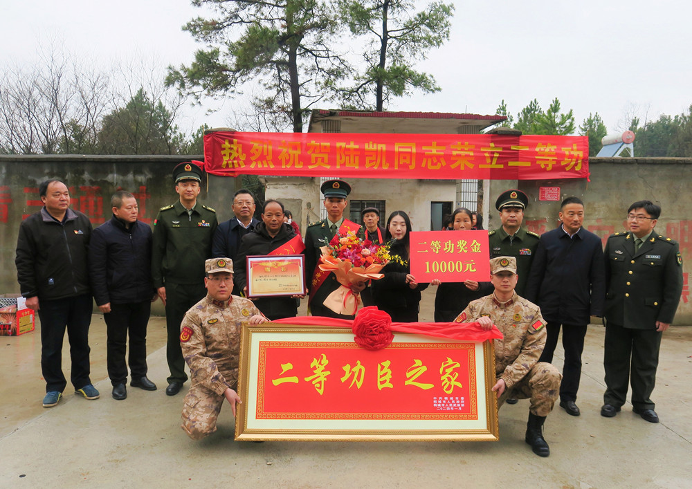 千里傳佳音,家鄉(xiāng)揚(yáng)美名。2月1日,市委書記章周中,市委常委、市人武部政委任關(guān)興,73集團(tuán)軍某旅領(lǐng)導(dǎo)趙彬翔率隊(duì),為榮立二等功的現(xiàn)役軍人陸凱家庭送去立功喜報(bào),并致以熱烈祝賀和美好祝福。