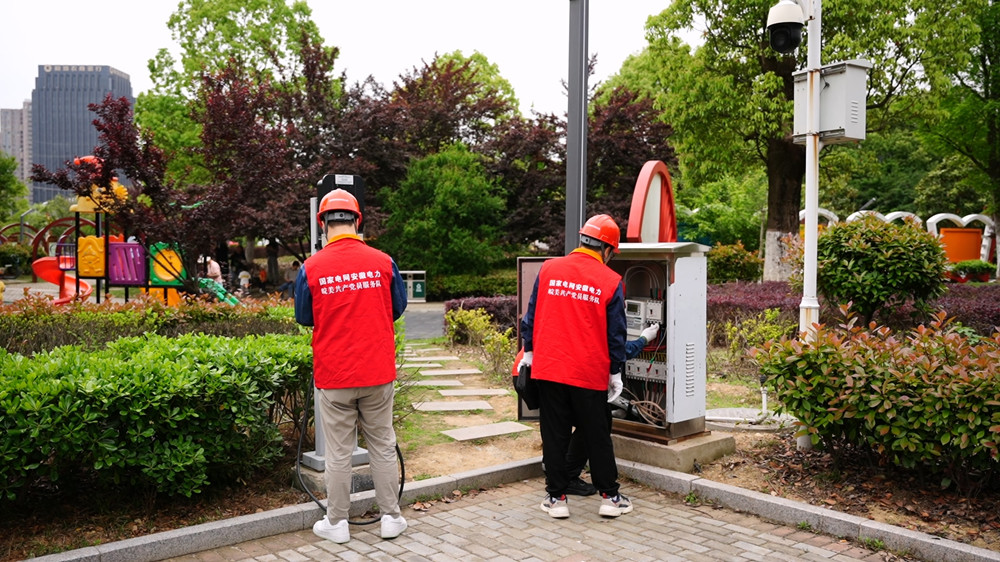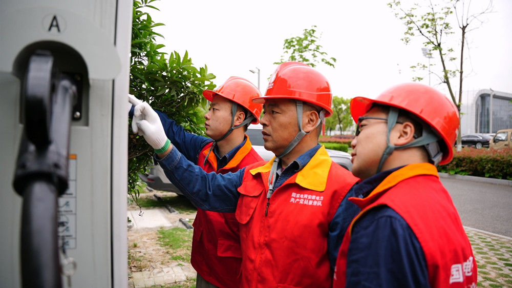 圖為國(guó)網(wǎng)桐城市供電公司黨員服務(wù)隊(duì)“紅馬甲”正在對(duì)充電樁進(jìn)行巡檢。