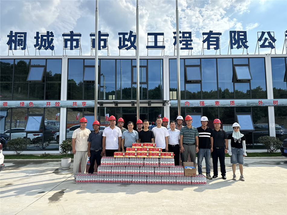 連日來(lái),我市氣溫節(jié)節(jié)攀升,街頭熱浪滾滾。為進(jìn)一步做好防暑降溫工作,切實(shí)關(guān)愛一線職工,近日,安桐集團(tuán)領(lǐng)導(dǎo)班子成員帶領(lǐng)集團(tuán)相關(guān)部室負(fù)責(zé)人分成5個(gè)小組,慰問(wèn)堅(jiān)守一線崗位從事公交、供水、綠化養(yǎng)護(hù)及重點(diǎn)工程建設(shè)者,為大家送去礦泉水、罐頭等解暑降溫用品,為戰(zhàn)高溫、在奮斗的一線員工送去清涼與關(guān)懷。