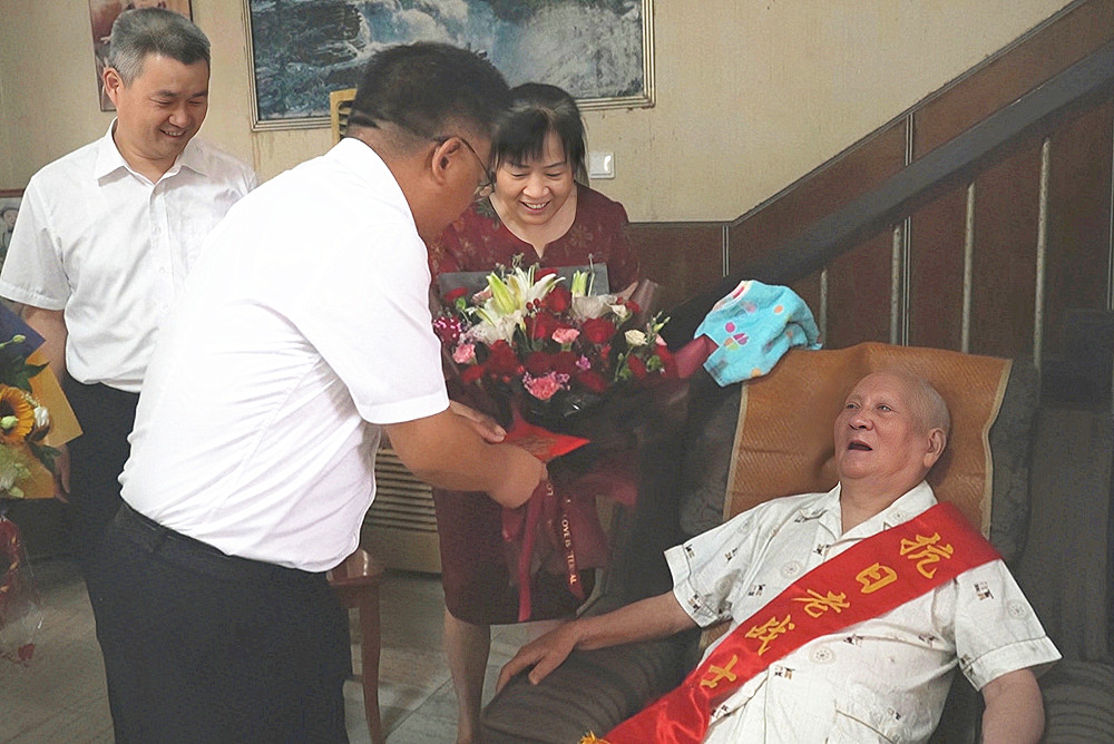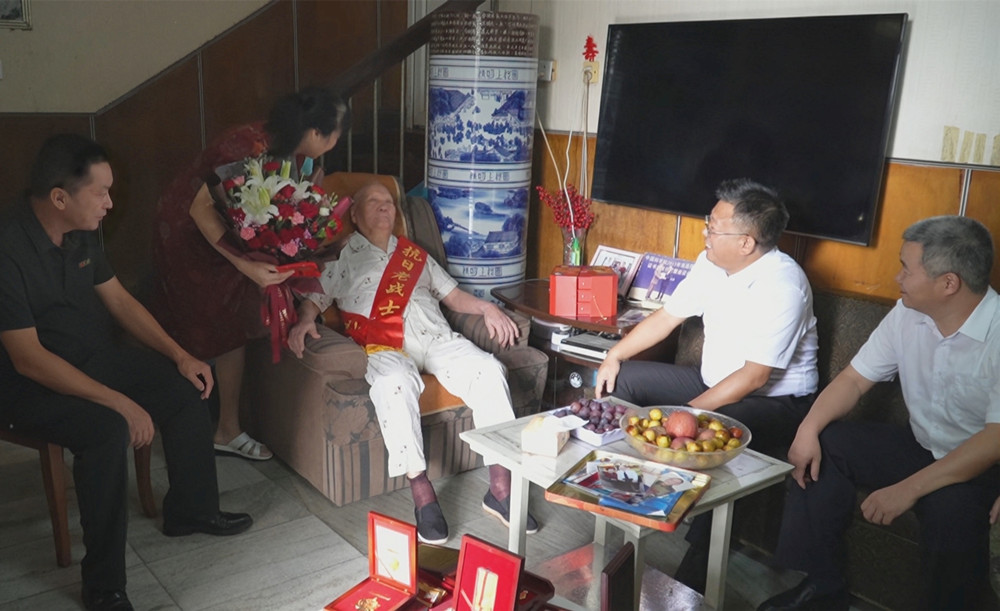 今年96歲的孫漢倫,1945年入伍,經(jīng)歷了抗日戰(zhàn)爭和解放戰(zhàn)爭。在孫老家中,章周中代表市委市政府送上慰問金,與老人及其家屬親切交談,關(guān)切詢問老人生活起居、身體健康等情況,感謝他為抗日戰(zhàn)爭勝利作出的貢獻(xiàn)。