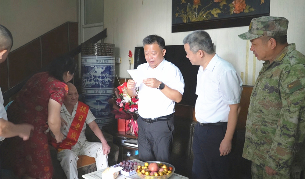 今年9月3日,是中國人民抗日戰(zhàn)爭勝利紀(jì)念日暨世界反法西斯戰(zhàn)爭勝利79周年紀(jì)念日。當(dāng)天上午,市委書記章周中走訪慰問抗戰(zhàn)老英雄孫漢倫,共憶崢嶸歲月、共話革命傳統(tǒng),并致以崇高敬意和誠摯問候。市人武部部長岳大嶺、副市長金天柱參加慰問。
