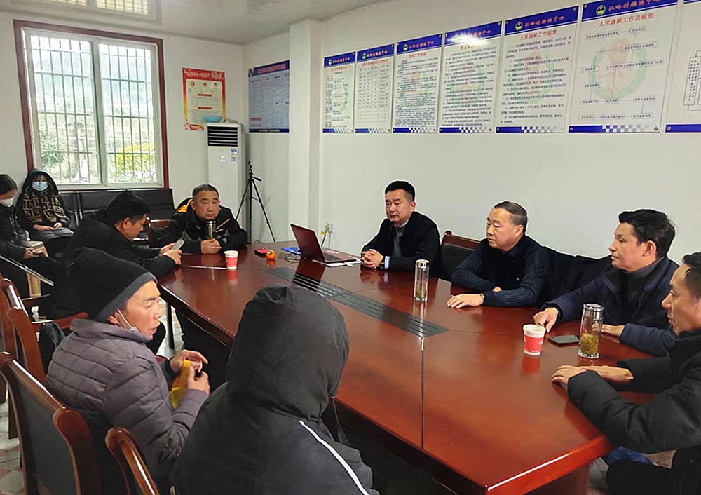 圖為村(居)干部運(yùn)用“六尺巷工作法”,調(diào)解村民之間的矛盾糾紛。