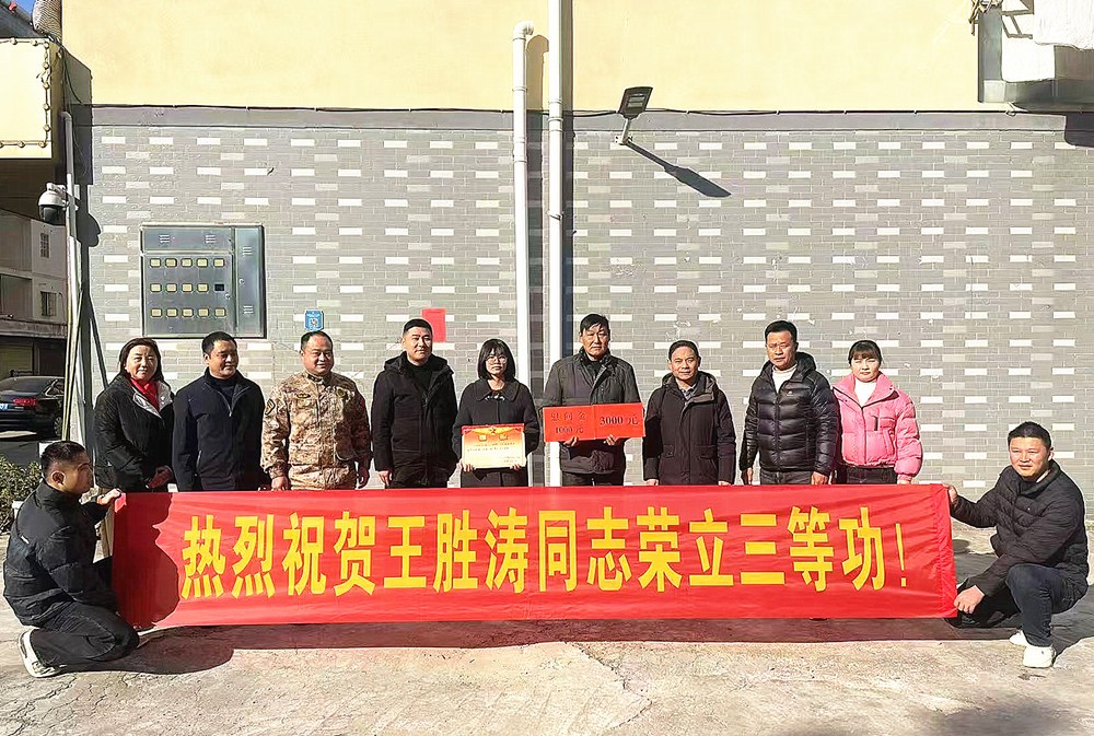 近日,龍騰街道黨工委、辦事處有關(guān)負責人率街道武裝部、退役軍人服務(wù)站等方面工作人員,前往現(xiàn)役軍人王勝濤家中,為其送上“三等功”喜報,傳遞黨和政府的關(guān)懷,讓軍人軍屬共享這份喜悅與榮耀。