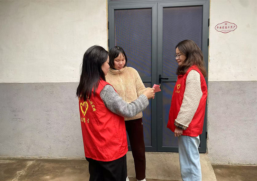 圖為鱘魚鎮(zhèn)志愿者入戶發(fā)放“宜居桐城”行動(dòng)“明白紙”。