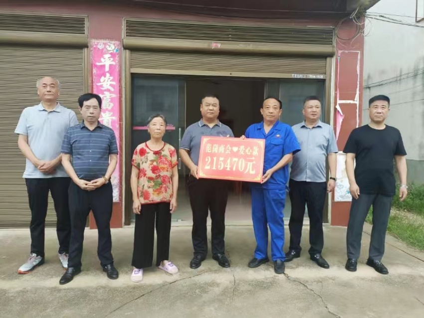 圖為范崗商會向患病學(xué)子黃旺的家人捐贈愛心款。