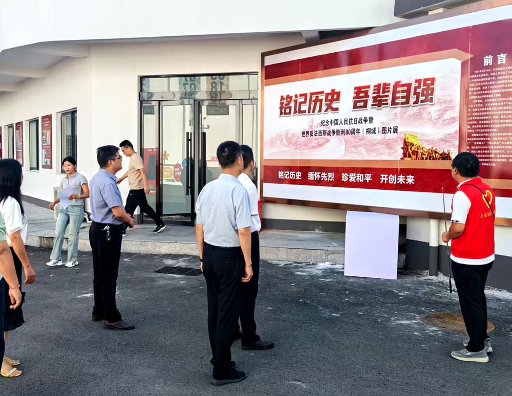 8月21日,紀念中國人民抗日戰(zhàn)爭暨世界反法西斯戰(zhàn)爭勝利80周年(桐城)圖片展在桐城市黨群服務中心與市民見面。市委常委、組織部部長董紅軍現(xiàn)場指導布展工作并觀看展覽。