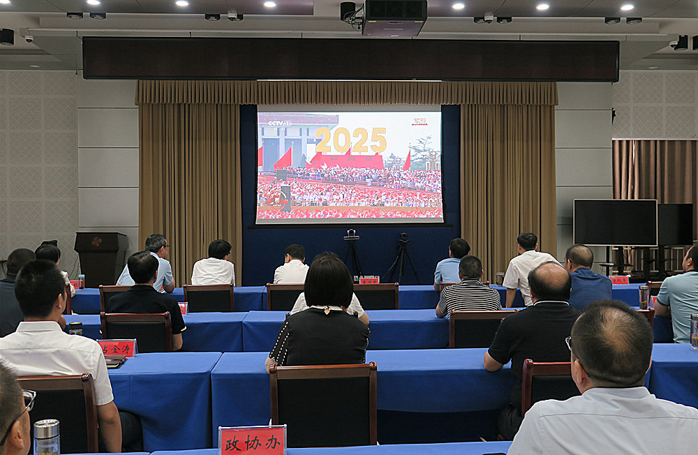 當(dāng)天上午,市領(lǐng)導(dǎo)洪長久、李玲、祖聰、水濤、汪杰賢、殷銳等集中收聽收看大會和閱兵儀式。 這次閱兵,共有45個(gè)方(梯)隊(duì)受閱,多數(shù)武器裝備首次亮相,充分展現(xiàn)抗戰(zhàn)英雄部隊(duì)的血脈傳承,充分展示新時(shí)代人民軍隊(duì)政治建軍新風(fēng)貌、力量結(jié)構(gòu)新布局、現(xiàn)代化建設(shè)新進(jìn)展、備戰(zhàn)打仗新成效。 紀(jì)念中國人民抗日戰(zhàn)爭暨世界反法西斯戰(zhàn)爭勝利80周年大會歷時(shí)1小時(shí)26分鐘,于10時(shí)26分圓滿結(jié)束。8萬羽和平鴿展翅高飛,8萬只氣球騰空而起,《歌唱祖國》的激昂樂曲響徹整個(gè)天安門廣場。