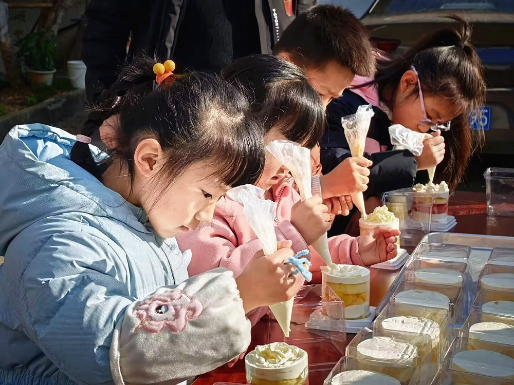 近日,在2026年元旦佳節(jié)來臨之際,龍騰街道坊正村以“‘烘’然心動 ‘焙’感幸福”為主題,組織10組家庭參與親子烘焙制作活動。 活動現(xiàn)場,孩子們在專業(yè)烘焙師的指導下,將準備好的奶油均勻涂抹在蛋糕胚上,繪出創(chuàng)意圖案,并用水果加以點綴;親子間配合默契,其樂融融。不久后,一個個造型別致、創(chuàng)意十足的蛋糕相繼出爐,小朋友們捧著親手制作的蛋糕,成就感滿滿。此次活動,不僅鍛煉了孩子們的動手實踐能力,增進了親子間的交流互動,更營造出濃厚溫馨的節(jié)日氛圍,進一步增強了社區(qū)凝聚力。 童康 攝 |