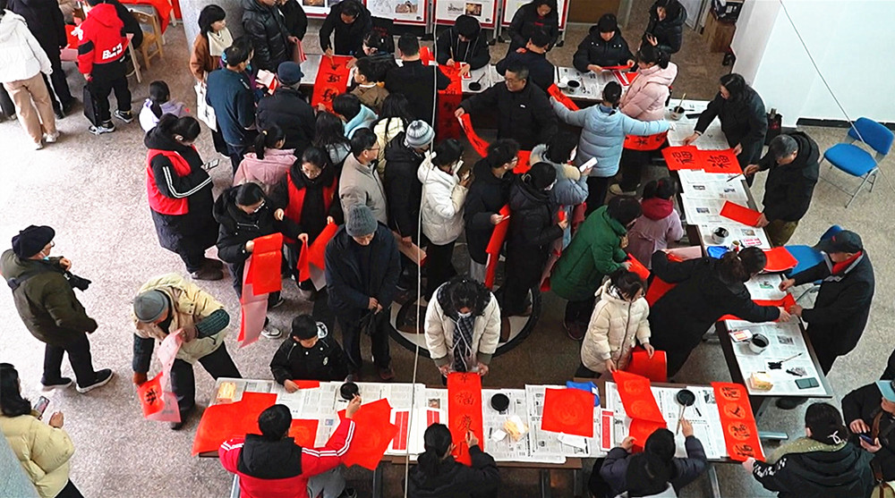 “萬馬奔騰氣象新,百花齊放春滿園”“躍馬奔騰行大運(yùn),鴻福浩蕩賀新春”……一副副寓意吉祥、飽含祝福的春聯(lián)躍然紙上,或端莊大氣,或靈動飄逸,既有傳統(tǒng)書法的藝術(shù)韻味,又寄托著大家對馬年新春的美好期盼。少年書法藝術(shù)愛好者也上場助陣,幫助市民書寫春聯(lián)。紅彤彤的春聯(lián)、金燦燦的福字,濃濃的年味兒撲面而來。